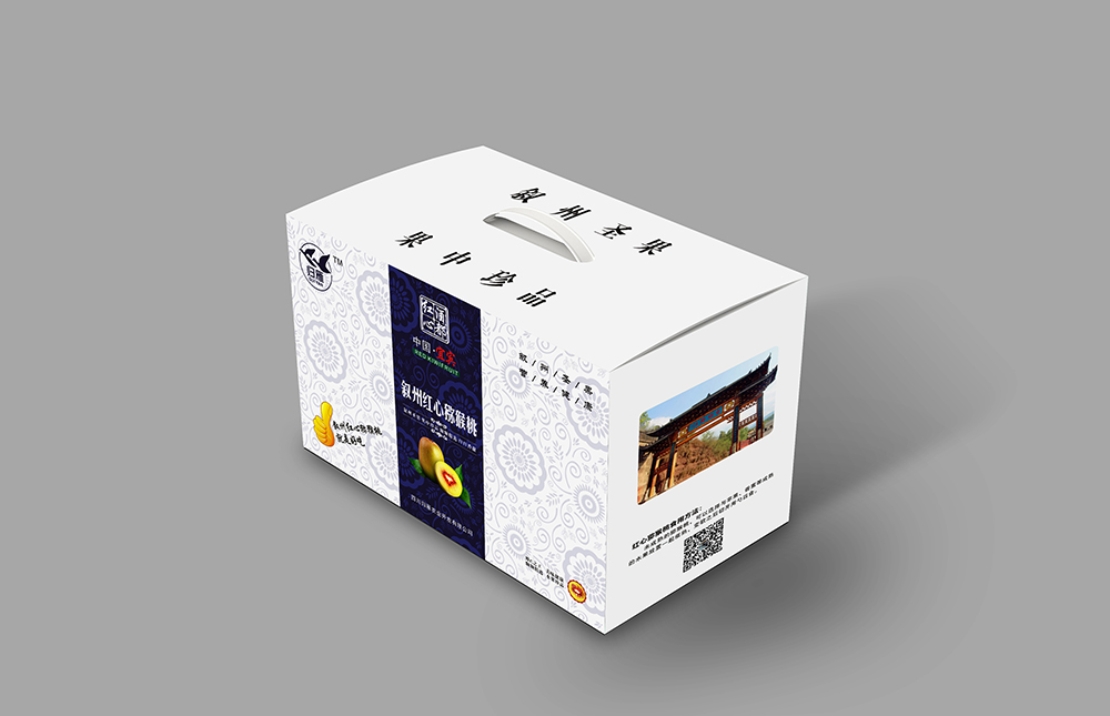 設(shè)計(jì)理念:本款包裝盒主要是打造一款具有“宜賓特產(chǎn)”的紅心獼猴桃水果包裝,整個(gè)包裝盒以白色為主,給消費(fèi)者一種純潔的情感感受,正面以醒目的深藍(lán)色圖塊吸引消費(fèi)者的注意力,這個(gè)方式的設(shè)計(jì),可以讓消費(fèi)者通過顏色從而關(guān)注到產(chǎn)品的內(nèi)容。
