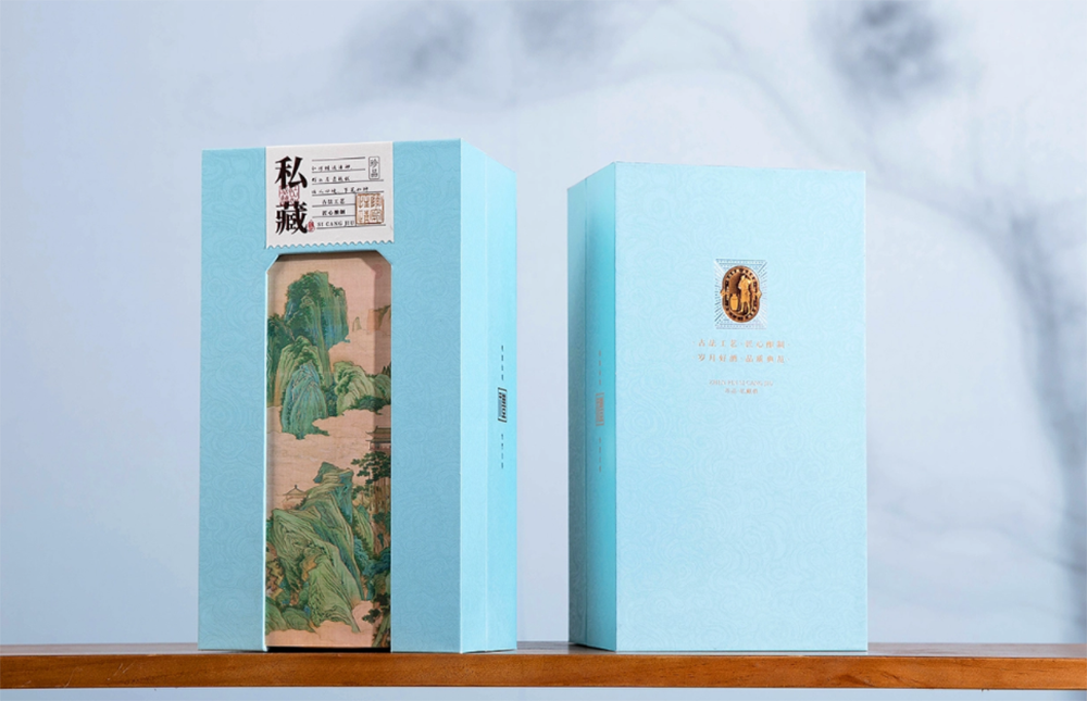 設(shè)計(jì)理念:本款白酒包裝盒設(shè)計(jì)以四川地域文化為延伸,向消費(fèi)者介紹了白酒的釀造過程,使商品與消費(fèi)者產(chǎn)生視覺交互時(shí)不僅能呈現(xiàn)產(chǎn)品信息,還能傳遞四川白酒的歷史來源,釀造工藝和飲用吸塑等文化性內(nèi)容。