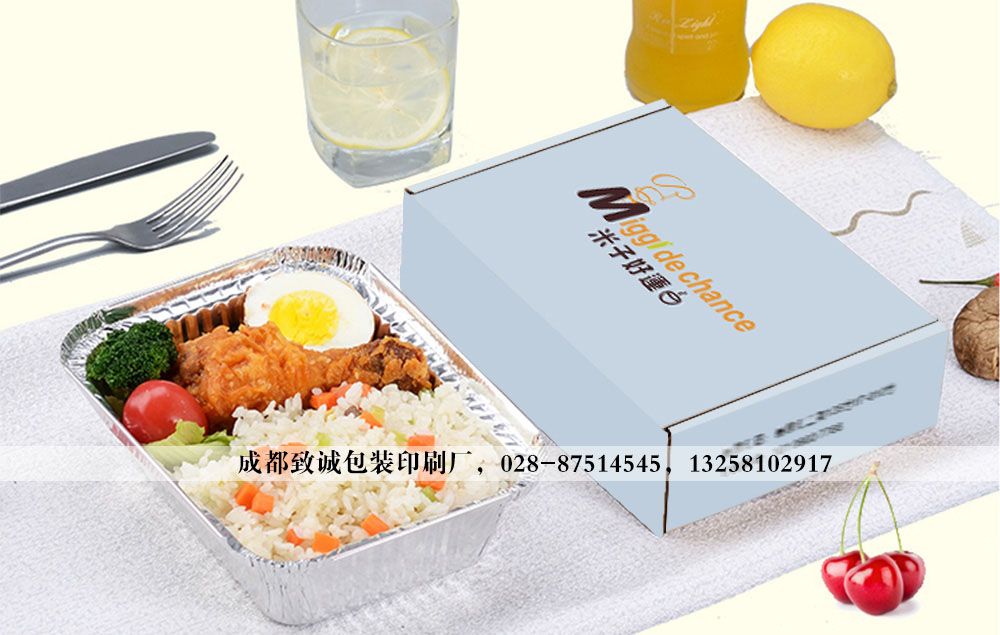 產(chǎn)品工藝:手提袋封面彩色印刷覆亞膜、模切、制袋、串繩;餐盒封面彩色印刷覆亞膜、模切
