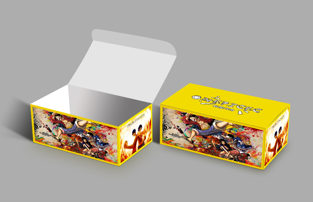 設(shè)計(jì)理念:本款包裝設(shè)計(jì)偏向于年輕人喜歡的風(fēng)格,包裝盒以“海賊王”圖案作為主圖,吸引了不少消費(fèi)者的好奇心,又以代表美味的黃色作為主打色,能引起人的食欲,給人一種很好吃的感覺(jué),讓消費(fèi)者聯(lián)想到包裝里面的是美味可口的食品。