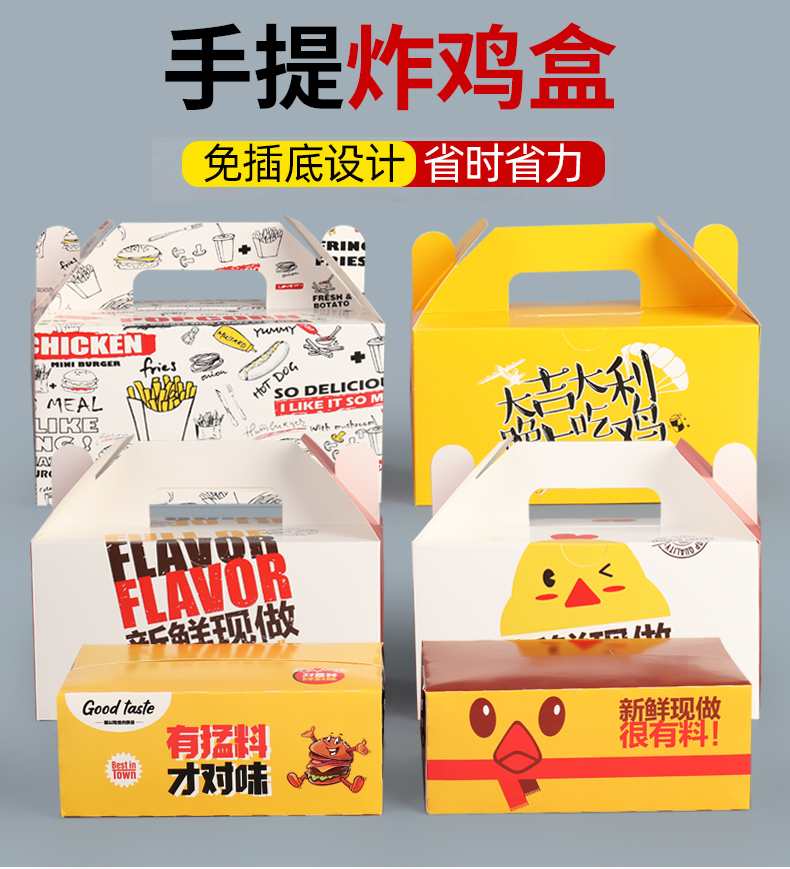 炸雞配啤酒是世界杯期間看球賽的標(biāo)配,隨著世界杯的臨近,炸雞也逐漸火了起來。試想一下,跟幾個(gè)好友一起品球,一起啃著炸雞,是多么愜意的一件事。我公司為廣大炸雞店老板們量身定制各種樣式的炸雞外賣打包盒及外賣紙質(zhì)手提袋,如下面這款: